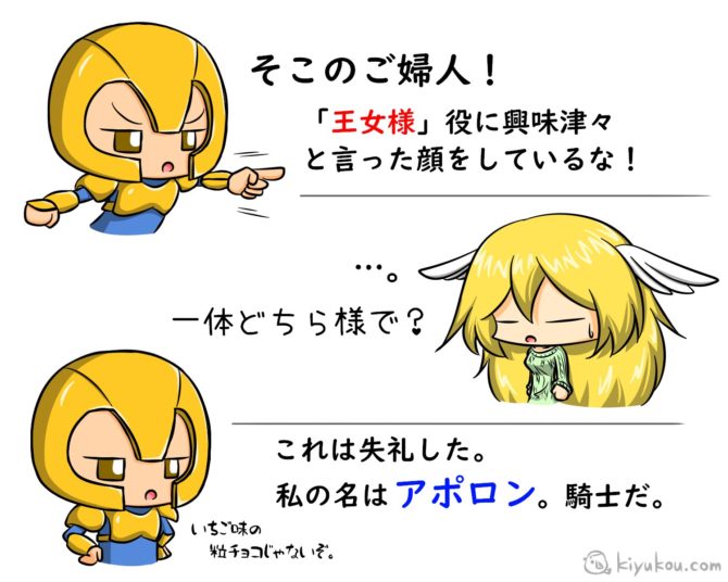 主人公の騎士アポロンは、デュポンにさらわれた恋人アルテミスを助けるべく、ペガサスに乗って「デュポンの神殿」を目指すのであった。