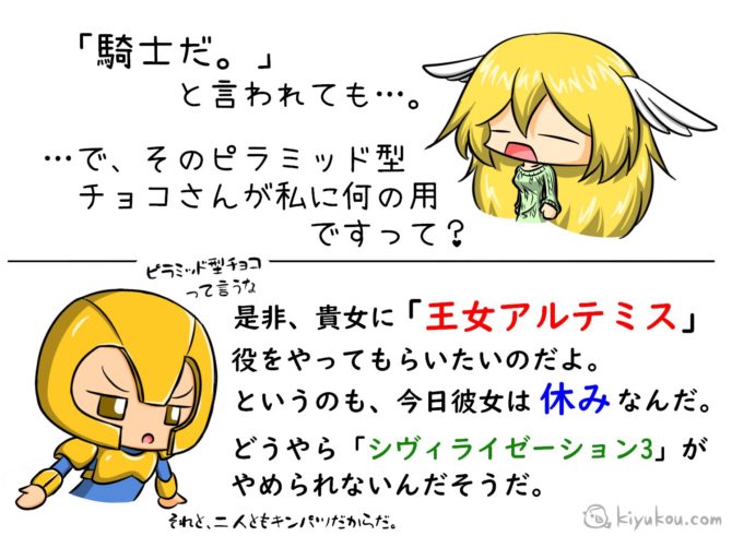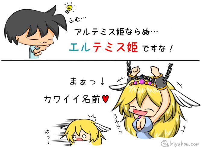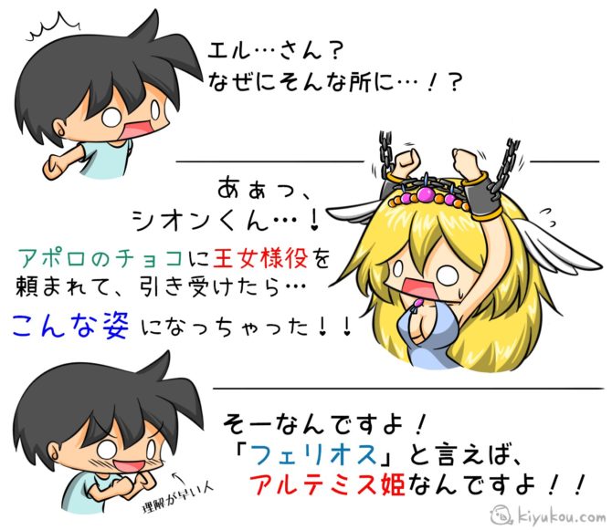 アルテミスに、「光の剣「フェリオス」を手に入れて!」と言われます。