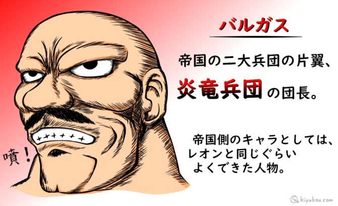 - レオンやバルガスの部下 ➡ 団長のカリスマ性によって命をかけて戦う