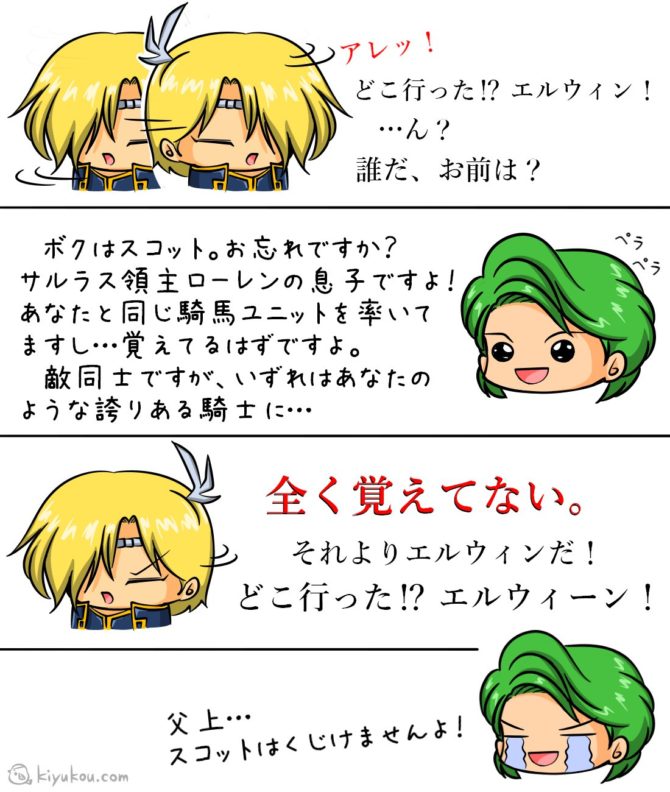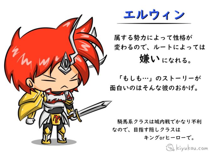 彼の最たる特徴は、どの軍勢ルートに進もうと必ずエルウィンに付いてくるところ。