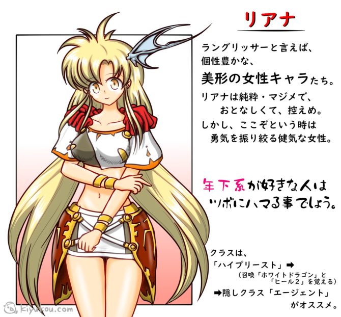 特にバルガスの傭兵「グレナディーア」がかなり堅いので、リアナが召喚する「ヴァルキリー」とヘインの魔法攻撃で援護しつつ、頼みのエルウィンで突撃というのがセオリーかと。