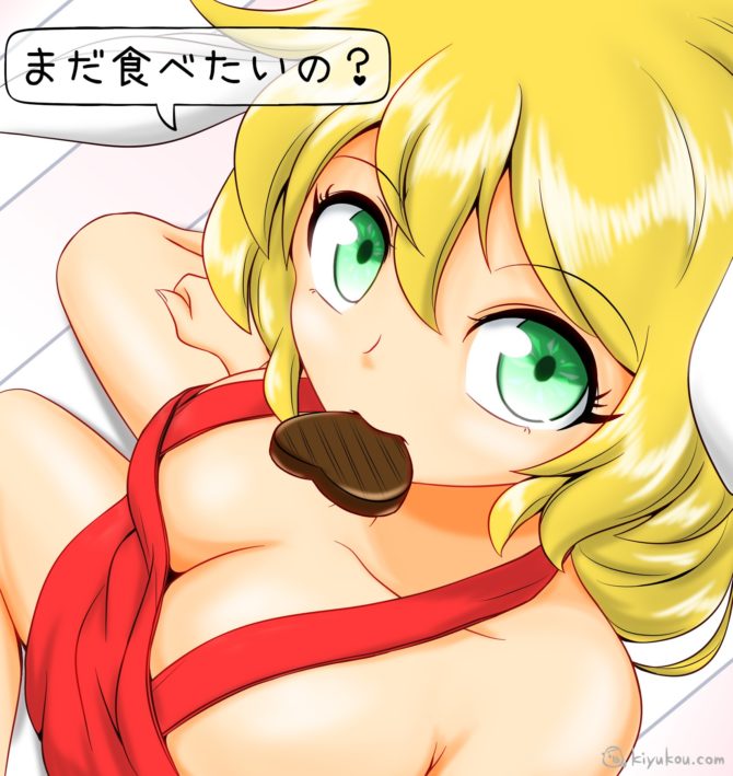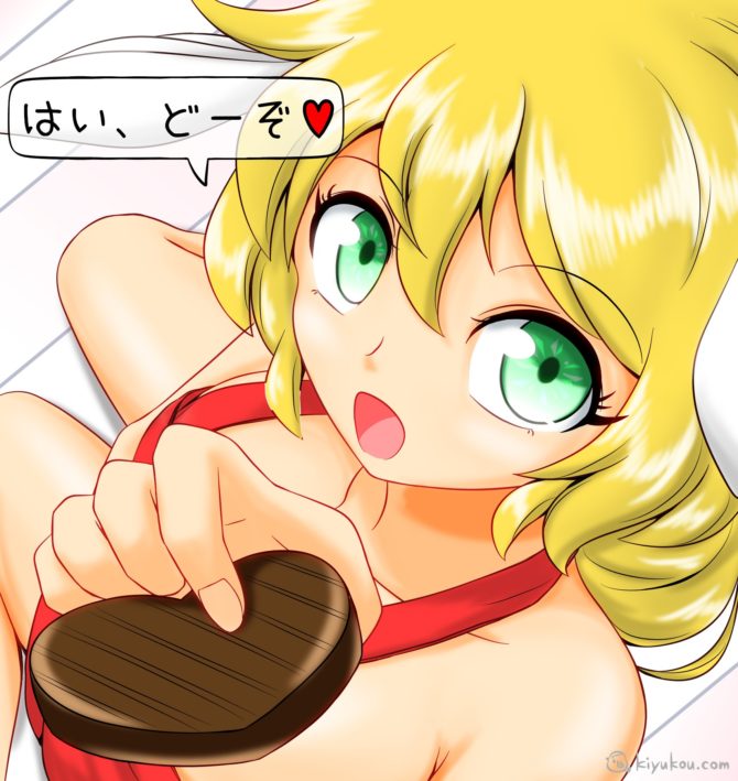 「もうちょっと待ってねエルちゃん Vol.2」No.011のチョコを作り終わった後のエルちゃん、みたいな感じになりました。